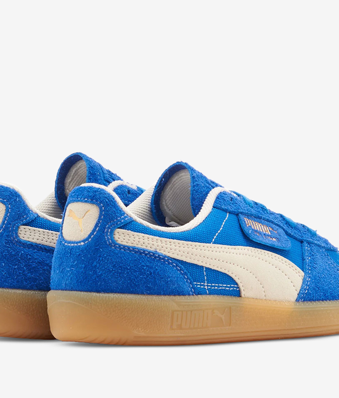 Straight from our archives, it's the PUMA Palermo. This classic terrace shoe debuted in the 80's and now, we've brought it back for the fans. With its signature T-toe construction and classic gum sole, this version features a textile upper and suede overlays.